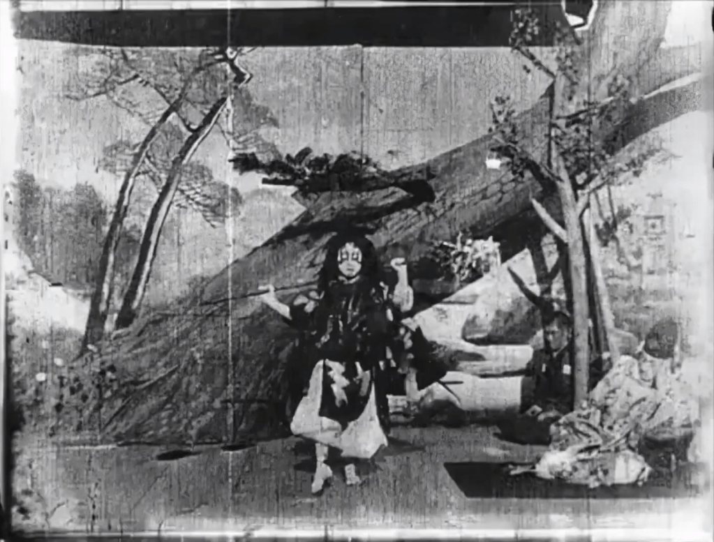 Danjūrō’s distaste seems to have gone beyond mere contempt for film as an art form. He apparently referred to it with the pejorative “ship-brought” (i.e., foreign), as well. However, his manager and others managed to convince him of the value of preserving a record of his performance for posterity. He reluctantly agreed, but only on the condition that the film would not be shown while he was still alive. The result, shot by Shibata in November 1899, is the oldest (surviving) Japanese film.