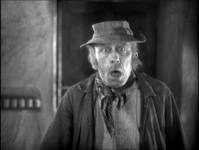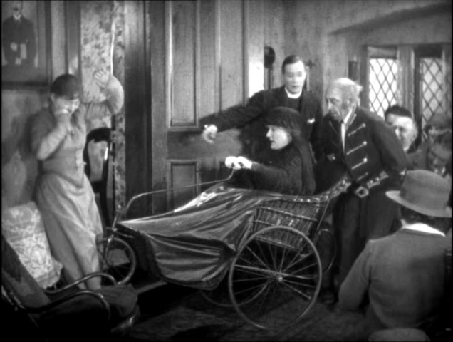 Soon, ‘Minta looks up from her preparations in the kitchen, we see a shot of the church bell swinging back and forth in the steeple, then back to ‘Minta. In a sound film, we would simply have heard the tolling of the bell signaling the end of the ceremony, as she does. Hitchcock often employed these 3-shot sequences to convey something to the audience: first a close-up of a character’s face reacting to something, then a shot of what they are reacting to, followed by another shot of the reaction. In a discussion on the techniques of film editing, Hitchcock noted that the key to these sequences is the image inserted in that middle shot. The example he uses is the nature of an old man’s smile framing a shot of a cute baby playing with its mother in the park or one of a cute girl sunbathing in a bikini. The former is benign; the latter, creepy. In The Farmer’s Wife, however (and in other silent films like The Lodger), Hitchcock employs this technique primarily as a substitute for sound.