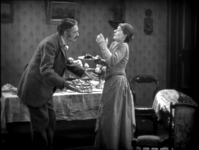 The story opens with the farmer’s wife lying on her deathbed, immediately introducing the central problem of the plot and establishing the major characters, ‘Minta and Sweetland. However, instead of a funeral, as one might expect, the deathbed scene immediately precedes a wedding. There isn’t even so much as a shot of a coffin being lowered into the ground. The Farmer’s Wife has little time for sorrow. Applegarth Farm is in an uproar as ‘Minta flies around the house in a whirlwind of preparations. After everyone finally leaves for the church, she continues to prepare the wedding feast in the kitchen while Churdles regales her with his dour views on marriage and love in general. (“Holy Matrimony be a proper steam roller for flattening the hope out of a man and the joy out of a woman.”)