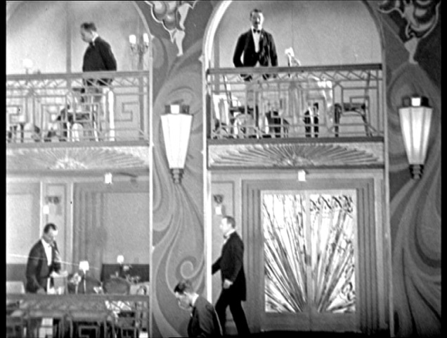 What actually happens is that the man spots the boy on the second floor and motions him to join them, then takes his leave. Betty and the boy quarrel (yes, again) and he leaves, only to return with her father and the news that she has been tricked. The remainder of the film I have already described, but it is particularly notable that throughout the cabaret scene, there is more dynamic cinematography than in any previous Hitchcock film.