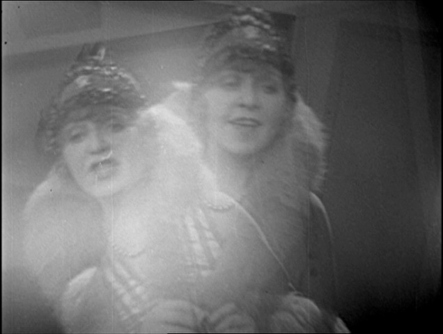 Betty is joyfully reunited with her fella (played by French actor Jean Bradin, simply called “The Boy”), and the voyage proceeds. A few days later, the ship sails into rough waters and everything on board is shown swaying violently back and forth. Betty makes her way into the nearly empty dining room, staggering entertainingly between tables, and is joined by moustache guy. The boy happens in shortly thereafter and is most put-out when he sees her with the man, but he is overcome by seasickness, particularly at the sight of fully-garnished dish containing the head of a pig. He turns and stumbles back out. Betty visits him later in his cabin, and we are treated to a camera effect that attempts to communicate his condition. It is quite successful, threatening to sicken the viewer as Betty’s image splits into three and sways blurrily in all directions.