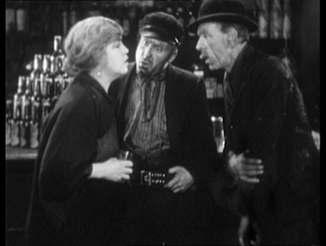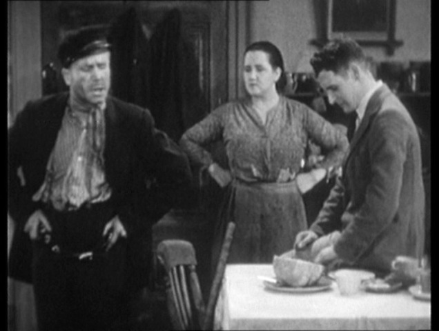 In fact, the production might be most notable for one of its least notable characters: the Orator that appears at the beginning, played by Barry Fitzgerald in his screen debut. Fitzgerald, best known for his lovable character work in such films as The Quiet Man, would go on to win an Oscar for his performance in 1944’s Going My Way. Another future Oscar nominee, Sara Allgood (How Green Was My Valley, 1941), plays Juno Boyle (of the title). She had previously appeared in Blackmail as Alice White’s mother. John Longden, also from Blackmail, appears here as Charles Bentham, a lawyer. Other actors include Edward Chapman as Captain Boyle, the strutting “paycock”(peacock) of the title, Sidney Morgan as Boyle’s no-good friend Joxer, and John Laurie and Kathleen O’Regan as Johnny and Mary Boyle, respectively.