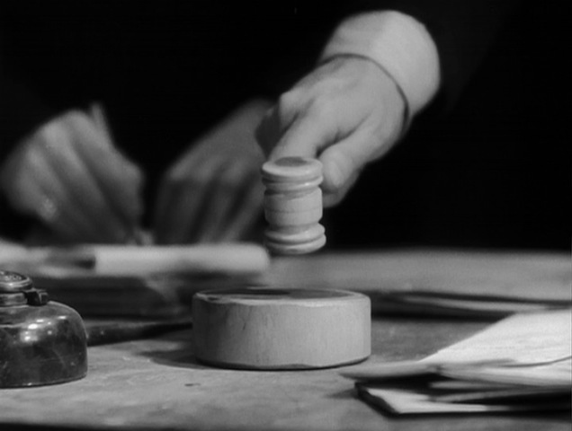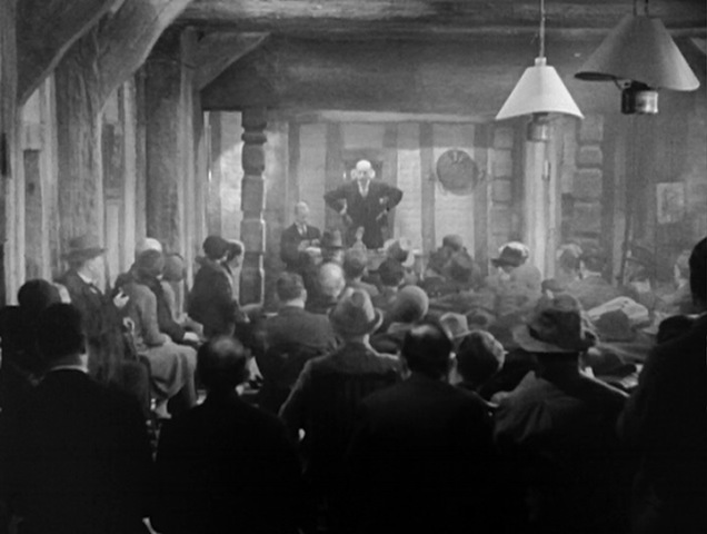 In any case, the auction sequence is by far the most exciting, lively scene in the film; genuinely suspenseful with a few surprising twists. Hitchcock keeps the camera in constant motion, mostly panning rapidly between the competing bids of Dawker and Hornblower, with occasional cuts to Hillcrests or the auctioneer. The price of the property creeps inevitably above 6,000 pounds, and Hillcrest (after a slight hesitation) blows his nose, muttering to his family that if the bid should pass 7,000 he’s not sure they can stand it. Finally, he is forced to blow his nose again and Dawker stops bidding. However, just as the auctioneer is about to declare the property sold, Hillcrest jumps in and begins to bid for himself.