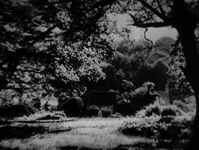 The film begins, as most of Hitchcock’s previous films with rural settings do, by establishing the scene with various shots of the countryside. Jill Hillcrest, atop the traditional vehicle of the idle rich (a horse), meets Rolf Hornblower, driving a shiny new automobile, in a country lane and they discuss the tension between their respective families. Moving on, the elder Mr. Hornblower arrives at the Jackman cottage to inform them that they’ll have to move out immediately, despite having promised Squire Hillcrest when he initially bought the land that he’d leave all of the original tenants in peace.