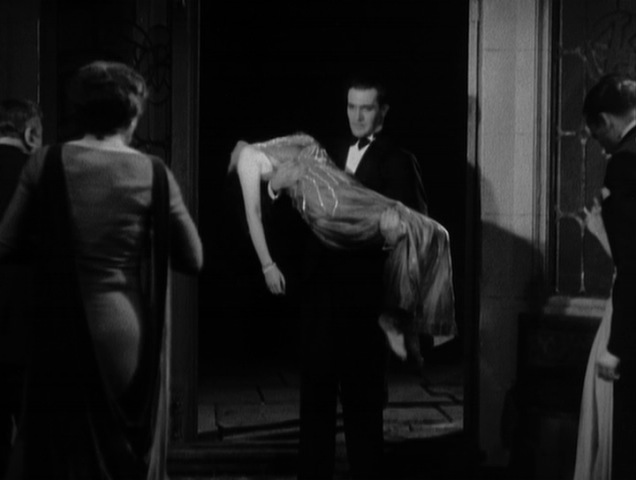 Jill goes to the curtain and finds that Chloe has disappeared outside. Charles rushes out after her, and Jill and Hillcrest, fearing the worst, follow. Soon, they find that Chloe has attempted to drown herself in the pond, and may have succeeded. Not to break the mood, but the story goes that Hitchcock originally filmed a scene of Chloe throwing herself into the pond, and demanded that Phyllis Konstam dunk herself several times while the camera rolled. All of these takes eventually ended up on the cutting room floor, and it is possible that Hitch never intended to use the scene in the first place.