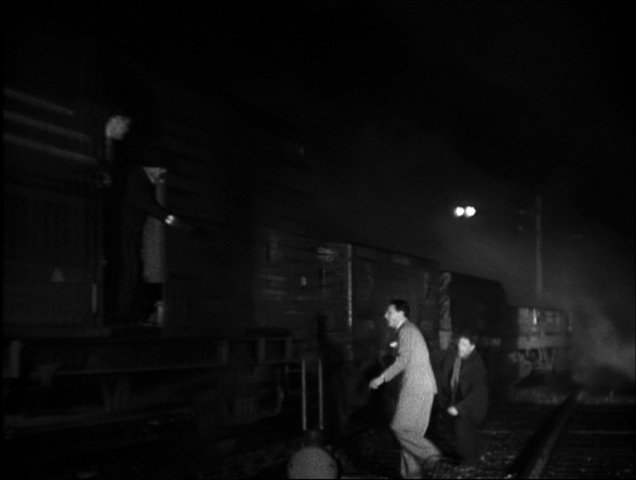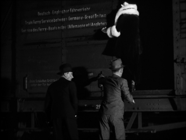 Rose stays to tend to her father while the other two men rush down to the cellar to intercept the crooks. They arrive just in time to overhear the escape plan. Just outside the house is a train-yard, and the thieves plan to board an empty train car, which will then be loaded directly onto a ferry and taken across the Channel to France, where they will be Scot-free.
