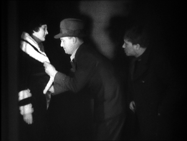 Just as they are trying to decide what to do, the bell rings to announce the arrival of more characters. Thorndike goes down to answer the door and finds a shady-looking couple named Brant and Nora. Brant claims to be interested in buying the house, despite the lateness of the hour (as the camera zooms in slowly for an ominous close-up of his face). Nora is a deaf/mute. As they step inside, another man, Henry Doyle, walks up and asks if he can come in, too. He calls Brant his uncle, and though it is plain that the other doesn’t recognize him, he doesn’t say anything.