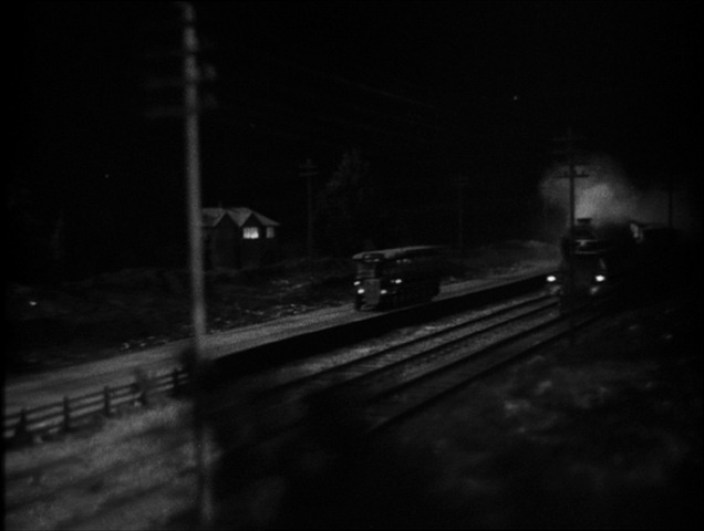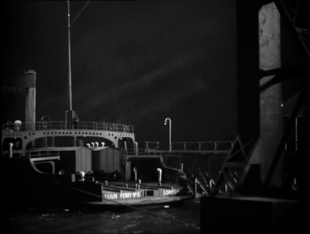 While there are some actual shots of trains and buses edited in here and there, the bulk of the climax was shot using models (which are quite clearly just that and nothing more). Nevertheless, the scene is quite elaborate, as the bus squeals around hairpin turns and under (model) bridges while the train flies over them, faster and faster all the time. On the final approach to the (model) ferry, the two speed along, side-by-side, past (model) villages and other scenery.