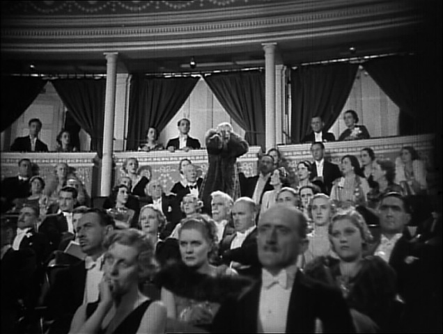 Ramon arrives at the Albert Hall and finds Jill already there. She spots him, too, but is not sure what to do. She takes a seat inside at ground level and looks carefully about as the music begins. The scene is magnificently suspenseful, as we are unsure at what point the assassin will be able to fire. It could be 10 minutes or 30 seconds. As the cantata slowly builds, Hitchcock gradually speeds up the cutting of the camera to match building tension. In addition to jumping all over the auditorium, he cuts back a few times to the spies, listening to the program on the radio.