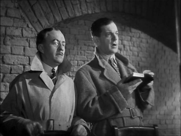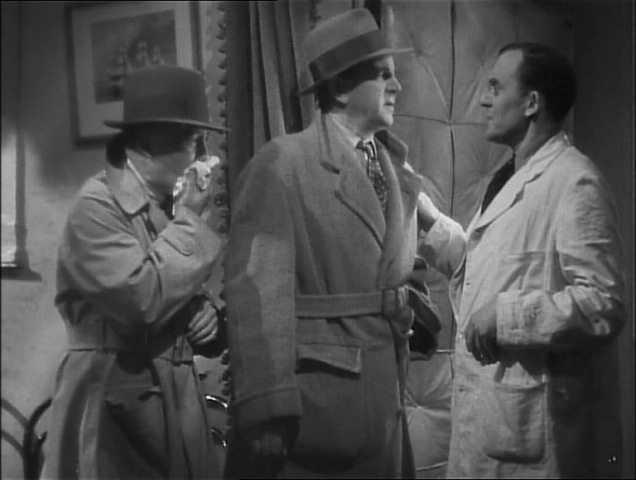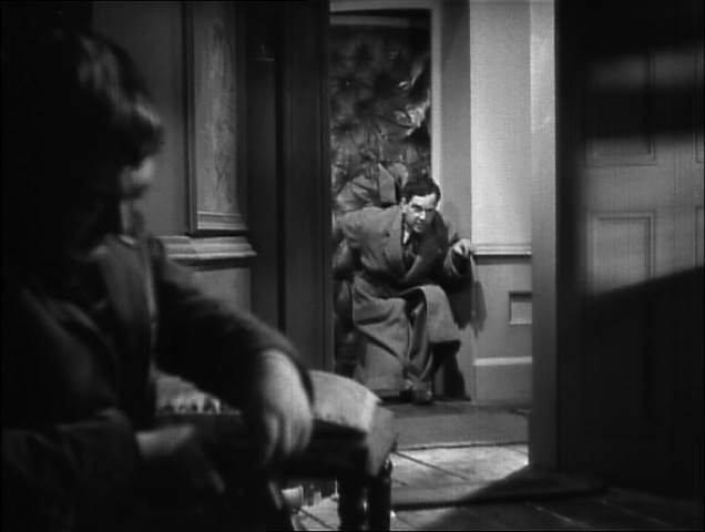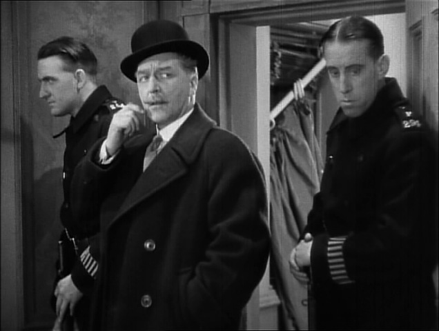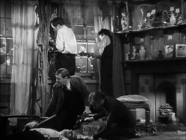 Finally, the policeman leaves, but one of the men with him stays behind. This fellow, Gibson (George Curzon), has a much higher position in government, and when Jill comes downstairs he pressures both parents to tell the truth for the good of their country. They refuse to cooperate for fear of reprisal, but Gibson is still there when Betty’s kidnappers call to make sure her parents are keeping their mouths shut. As soon as they hang up, Gibson immediately has the call traced and discovers that it originated in Wapping. Lawrence immediately remembers the note, but says nothing as Gibson orders plain-clothes detectives out in force, then leaves.