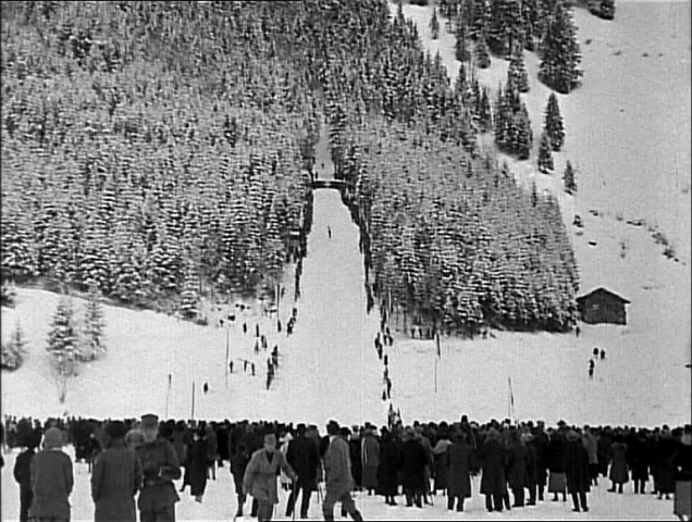 The film begins with an assortment of Swiss travel brochures before cutting to a beautiful scenic shot which it lays the credits over. The film proper opens on a ski slope. Lawrence and Betty are watching Louis Bernard perform a jump when Betty’s
