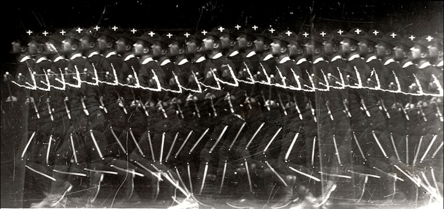 Now, with as much of an innovator as Marey was, my jaw still dropped when (after having watched the animation several times) I first saw how L’Homme Machine was made. Like Sallie Gardner at a Gallop, it was produced from a series of reference images. Take a look at this example of the type of image used: