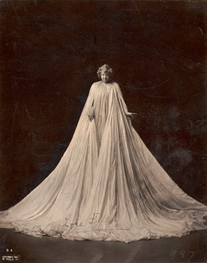 Loie Fuller began her career on the stage as a child, and by her late teens she had achieved a certain amount of success and recognition as a comedic actress. In her autobiography, Fifteen Years of a Dancer’s Life, she gives a fascinating account of how, while playing a role as the subject of a hypnotist, she happened to stumble into the effect that she would go on to develop into one of the most famous dances of the 1890s. All on her own she carefully practiced the dance, designed the costumes that would emphasize its movements, and planned the lighting effects that helped to distinguish it. Her only problem then was to convince any theatrical manager to take a chance putting her on the stage in a type of act for which she was totally unknown.
