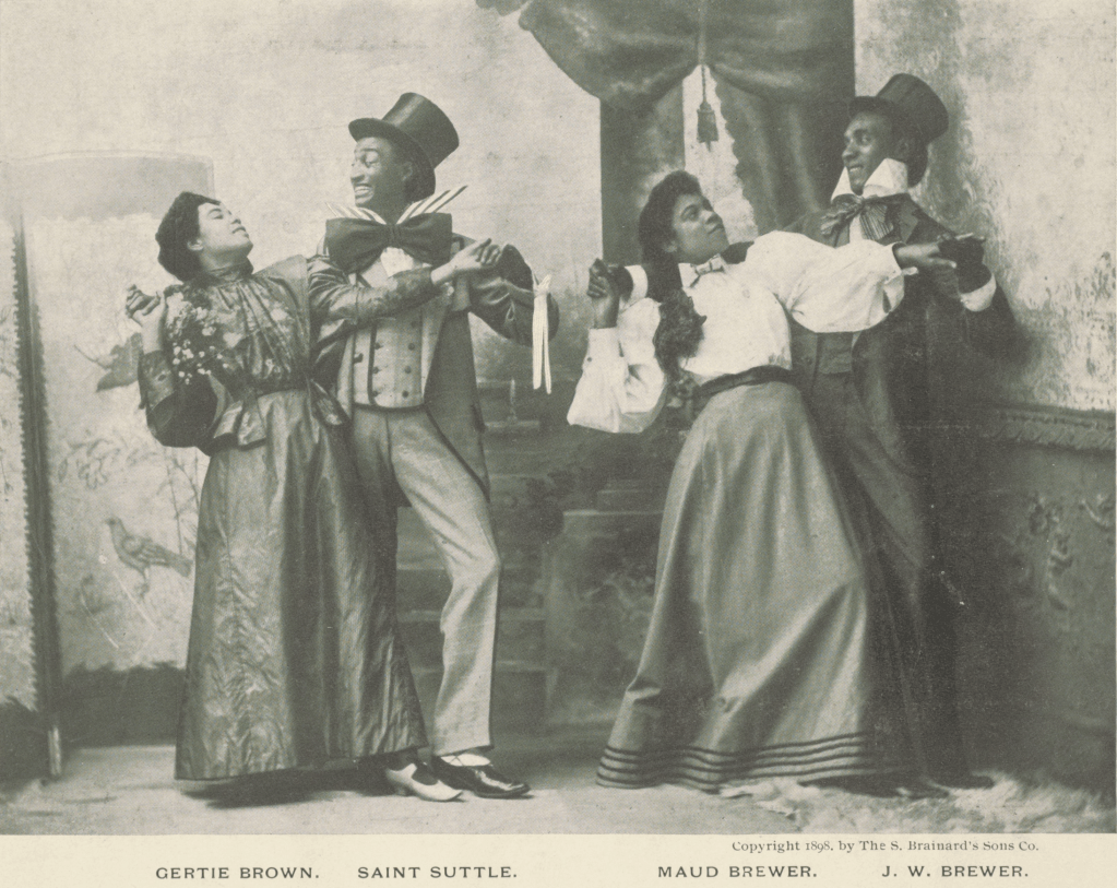 Saint Sutton and Gertie Brown (born Gilberta Gertrude Chevalier, which is a fantastic name) were two members of “The Rag-Time Four” alongside John and Maud Brewster (see left). Sutton was a composer as well as an entertainer, and the four were a dancing and singing group, best known for their version of the cakewalk. This dance has a fascinating history, originating before the end of slavery. Some accounts suggest that the dance began as an exaggerated parody of the more formal dances that were popular among white slaveholders of the time. Based on old footage of these dances, the theory is at least plausible.